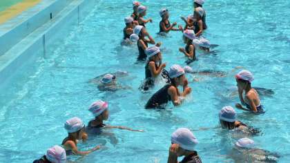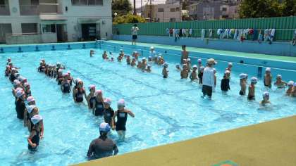 明日は1学期終業式。今日18日、1学期最後の1・2年生の水泳指導を行いました。夏休みの水泳指導を前にして、今日の指導はプール使用のルールや、基本的な動きをしっかりと身につけることに力をいれました。また、1人1人の泳力についても確認して、夏休み水泳指導に生かします。1・2年生にとって、特に水にまだ慣れていない子にとっては、この夏の水泳は泳力を伸ばす絶好のチャンスです。ぜひたくさん参加させてください。
