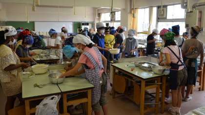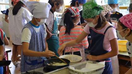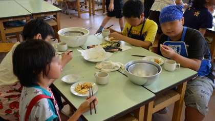 19日の終業式の後も、下校まで3時間、各学級でそれぞれの過ごし方をしました。6年生は2クラス合同で、昨日収穫したジャガイモを、フライドポテトに調理して試食しました。丹念に皮をむき、油で揚げ、最後に塩を軽く振って出来上がり。自分で料理したものは、やっぱりおいしく感じますね。