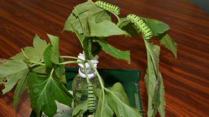 キアゲハの食草である学校にはえているアシタバにくっついていた、キアゲハの幼虫です。大きさからするとすでに5齢でもうじきサナギになりそうです。観察するために飼育することにしました。虫の嫌いな方には、虫の話題ばかりですみません。でも、こんな身近なところで、命の営みがあることを知っていただきたいと思って掲載しました。