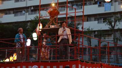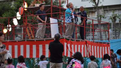 20日、21日の2日間、学区の希望ヶ丘団地のお祭りが行われました。希望ヶ丘団地の造成、入居による児童数増加に伴って開校したのが希望丘小学校です。お祭りが今年で第40回、そして本校も開校40周年です。両日ともに午後1時から午後9時まで、盛大に行われました。午後7時には自治会長さんや来賓の皆さんのご挨拶があり、その中で、本校の開校40周年にふれて感激です。20日には区長さんも訪れ、ご挨拶されました。夜がふけるまで盆踊りの輪ができて、お祭りが盛り上がりました。