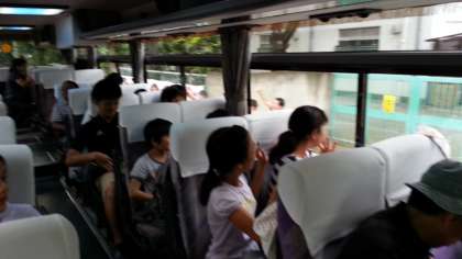 バスに荷物を積み込みクラスごとに2台に分乗。いよいよ出発です。見送りの皆さんに元気に手をふってバスは一路日光へ。