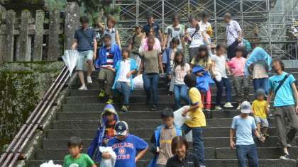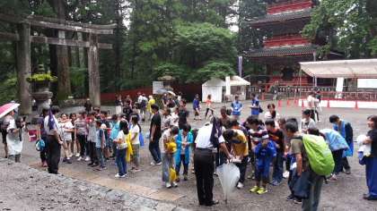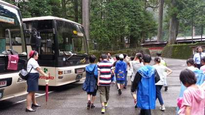 東照宮の見学はこれでおしまい。ガイドさんにお礼をいった後、駐車場に戻り、バスに乗って宿舎に向かいました。雨は降っていませんが、雷鳴がとどろきはじめました。