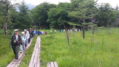 ハイキングはいよいよ戦場ヶ原のハイライト、湿原地帯に入っていきました。雨も何とかやんで、自然にたっぷり触れることができました。