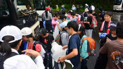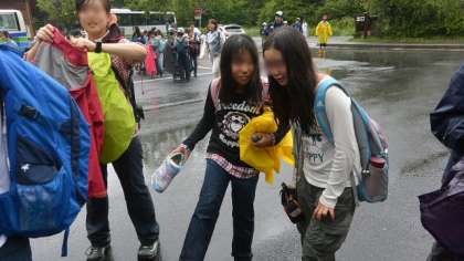 雨の中をひたすら歩き、目的地の赤沼駐車場にたどり着いた頃には雨がやんでいました。びしょ濡れでしたが、バスに乗せてもらい、冷えた体をしばし温めることができました。