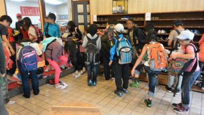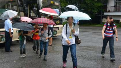 宿舎の梅屋敷旅館にバスが着いた時、また雨が降ってきました。つくづく雨にたたられた今日でした。それでも宿の方が、足がぬれている子どもたちのためにタオルを用意してくださったり、ぬれた靴を乾かしてくださったりしたことが、とてもありがたいと思いました。