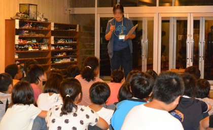 夕食後は、待ちに待った?・・・肝試しをしました。梅屋敷旅館の旧館に、宿の方で肝試しコースを用意してくださっています。玄関ロビーに集まった子どもたちに、担任から肝試しの仕方について説明をして、いよいよ肝試しの開始です。