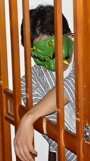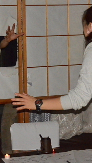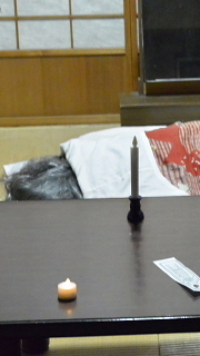 肝試し、コースの途中で待ち受けていたお化けはこんな感じです。ストロボをたいて明るく写っていますからなんということもない写真ですが、暗い中で見ると・・・。