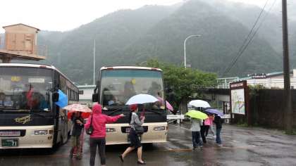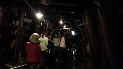 バスは足尾銅山観光に到着。銅山の坑道跡を利用した展示を見学します。