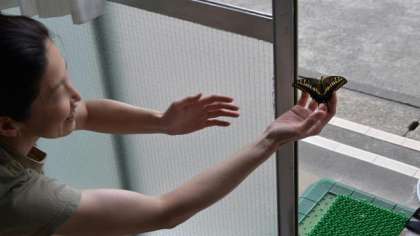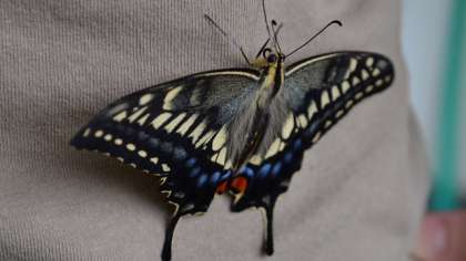 10日ほど前にお知らせしていたキアゲハのサナギが、31日羽化しました。きれいな蝶に変身。放蝶(というかわかりませんが)しました。曇り空でしたが、元気に舞い上がっていきました。