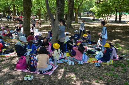 今日から5月を振り返ります。2日、全校遠足を行いました。今年度から、学年ごとの遠足を行うことになったので、全校遠足は「希望っ子班遠足」として、みんなの親睦を深めることを目標として、行き先を近くの芦花公園に変更しました。往路は希望っ子班ごとに違う学年の子と手をつないで歩き、記念写真も撮りました。班ごとに遊んだ後は、食事も一緒にしました。