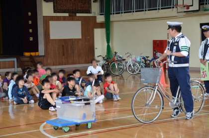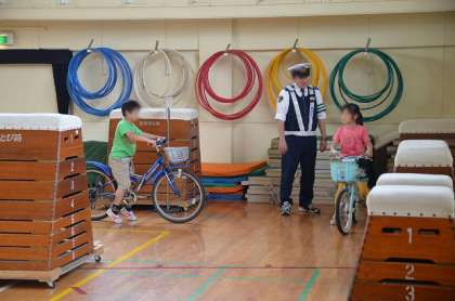 5月には成城警察署の協力で、1年生と3年生で交通安全教室を行いました。1年生は歩行訓練、3年生は自転車の整備や乗り方の練習をしました。交通事故には気をつけましょう。