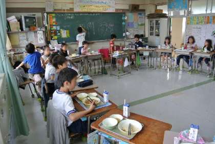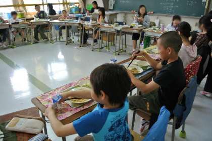 年間を通して行う希望っ子班の活動。写真は、給食を各自がもって希望っ子班ごとに集まって行った「希望っ子班給食」です。希望っ子班遊びで何をして遊ぶか話し合いもしました。