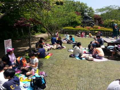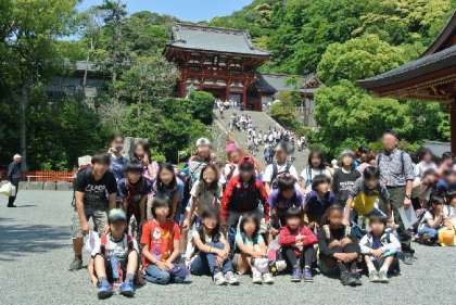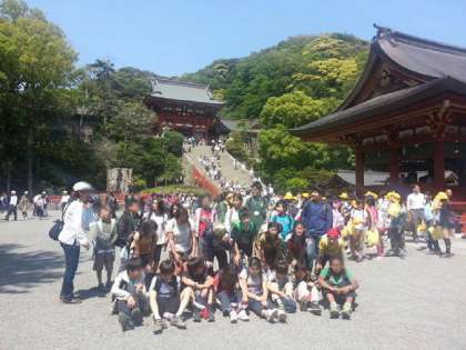 昼食の後は、再び鶴丘八幡宮までグループごとのハイキングです。全員が無事に集合し、記念撮影をしました。天気にも恵まれて、古都のハイキングを楽しみました。
