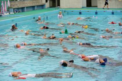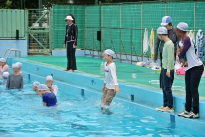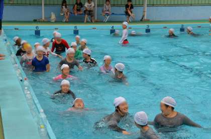 着衣泳、5・6年生のようすです。何度も経験している5・6年生はさすがに慣れていて、落ち着いて長時間浮くことができていました。何事も経験が大事ですね。