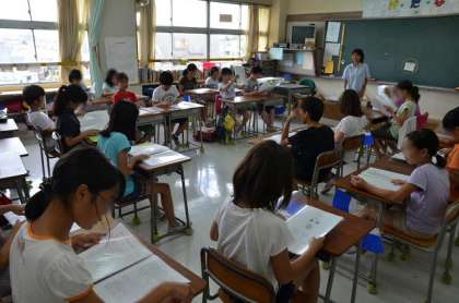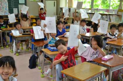 終業式の後、教室の整理や持ち物の確認などを行い、いよいよ1学期の通知表を手渡しました。本校の通知表は「つうしんひょう 希望」という名前がついています。子どもたちが自分の努力の成果を見て、次につながる希望をもってほしいという願いをこめています。