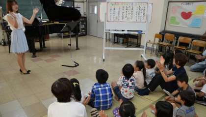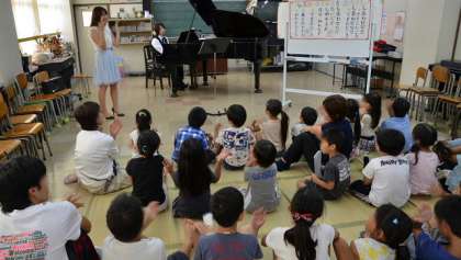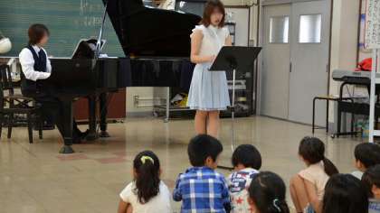 22日午後2時半から、4階の音楽室で新BOP主催の「夏休みクラシックコンサート」が行われました。音楽大学の学生さんで、音楽活動もされているお2人が、本格的なクラシックの曲からポピュラーソング、そしてみんなで歌える歌までピアノ演奏と声楽を聴かせてくださいました。1時間余りのミニコンサートでしたが、音楽室が美しい音につつまれ、子どもたちも午後のひとときを気持ちよくすごすことができました。