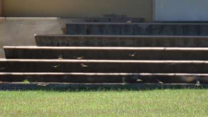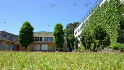昨日紹介した、芝生の上でのアキアカネの大量乱舞。27日、写真を撮ることに成功しました。本当にたくさん飛び交っています。