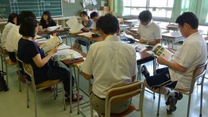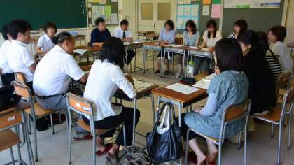 29日(木)午後、船橋希望中学校で、本校が属する、世田谷9年教育「船橋希望学舎」の研究・研修会が行われました。「学舎」というのは、義務教育9年間を連携して行うために、地元の中学校である船橋希望中学校と、そこに進学する船橋小学校、千歳台小学校、そして希望丘小学校の4校がグループ校となっていることを言います。教員は、定期的に研究会や研修会を、また、児童・生徒の交流などを行って連携を深めています。今日は、2学期に行う研究授業にむけて、各教科部会を行いました。