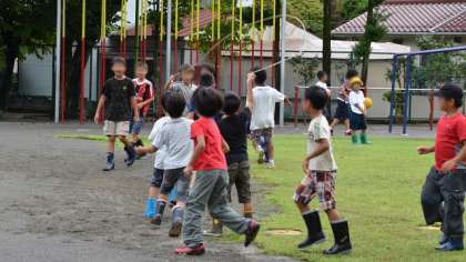 3年生が、6年生の朝練習に影響を受けたのか、休み時間に長なわとびに燃えています。昨日も雨上がりの校庭で、長靴でがんばっていました。今日は人数も増えて、結構真剣にやっています。上手です。