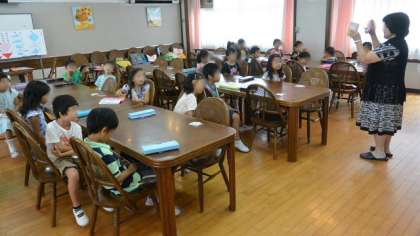 7日(土)、夏休みの間お休みだった新寺子屋が再開しました。久しぶりのことで、出席がちょっと少なめでしたが、1年生はランチルームで、2・3年生は2階理科室で学習に励みました。