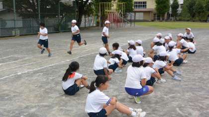 10日、5年生が運動会に向けて、校庭で100m走のタイム測定をしました。さすが高学年、力強い走りです。