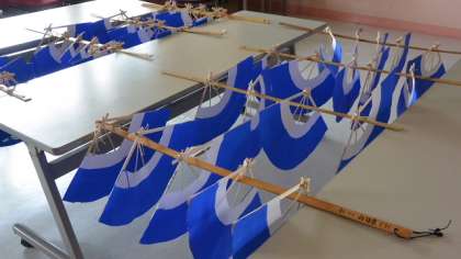 運動会に向けて、5・6年生が表現種目「みかぐら」の練習、準備に取りかかっています。写真は、子どもたちが手作りした、みかぐらを踊るときに使う扇子です。華やかな踊りが目に浮かぶようです。
