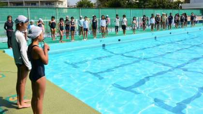 56年がプール納めをして、今シーズンの水泳指導が終了しました。6年生代表の言葉には、思い出と成果、そして中学への抱負が。そして、5年生代表の言葉には、6年生から学んだことと、来年最高学年になるにあたっての決意が述べられていました。今シーズンの無事故に、そして感謝の気持ちを込めてみんなで礼をして終わりました。