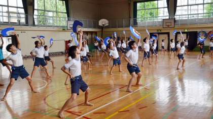 運動会特別時間割が昨日から始まりました。3・4時間目、5・6年生の表現種目「みかぐら」の練習を体育館で行いっていました。6年生が5年生に踊り方を伝える形で、1学期から少しずつ練習を始めてきたこともあり、ほとんどの子がしっかり踊れていました。これから完成度を上げていくことを目標に取り組んでいきます。