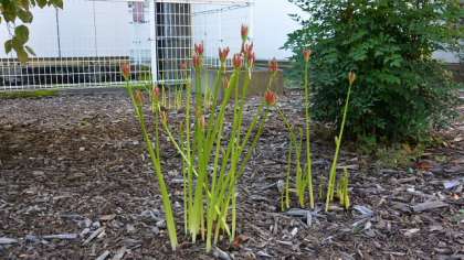 校庭の片隅に咲くヒガンバナです。つい先日まで暑い夏が続いていた今年のような転校でも、お彼岸の頃になると毎年着実に咲くヒガンバナです。