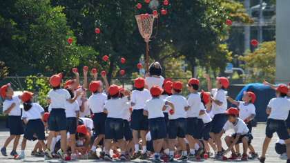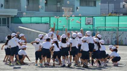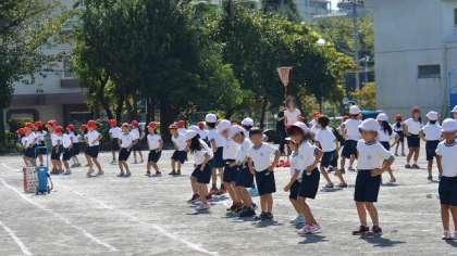 毎日少しずつ、運動会練習のようすを紹介します。1・2年の玉入れの練習です。玉入れの前に音楽に合わせてちょっとしたダンスを取り入れました。玉入れは一生懸命だけど、なかなか入らないのですね・・・?