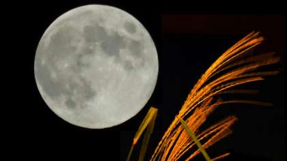19日は中秋の名月。しかも満月です。とてもきれいだったので、ススキと並べて撮影しました。