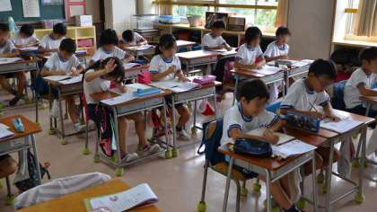 最近は運動会練習のようすばかりお伝えしていたので、普通の授業はしているのかという疑問の声もあがりそうですので、授業のようすを紹介します。3年生国語のようすです。新出漢字の練習を、ドリルを使って熱心に黙々とやっていました。子どもたちは結構漢字練習が好きです。成果がわかりやすいからでしょう。できあがると、担任のところに行き丸つけをしてもらいます。運動会練習がありますので、体育着を身につけての授業となっていました。