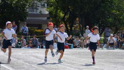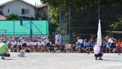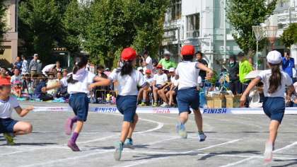 最初の個人種目、3年80m走です。昨年までは直走路で50mを走っていた3年生。今年初めてコーナーを回って競います。