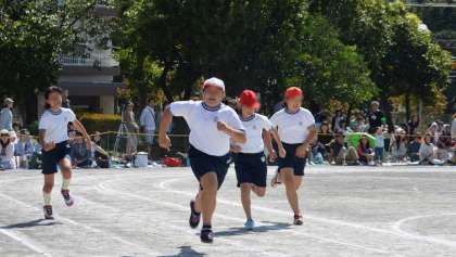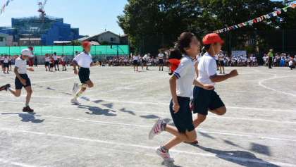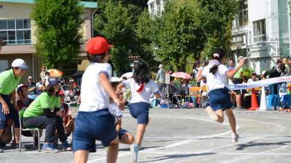 5年生の100m走です。女子の数の方が多い5年生ですが、さすが高学年という走りです。