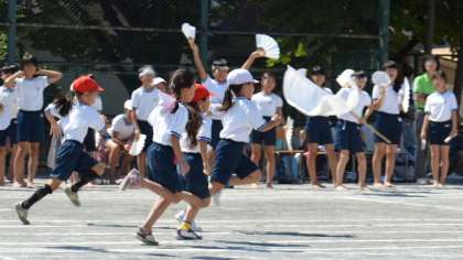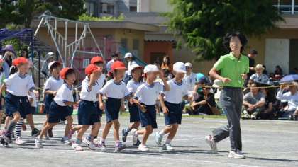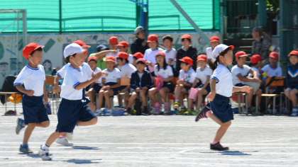 1年50m走。初めてみんなの前で走った50m。全力でゴールまで駆け抜けた1年生。よく頑張りました。レース終了後、退場の駆け足行進に、大きな拍手がおくられました。