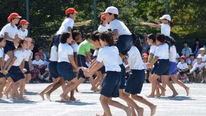 一回戦は団体戦です。赤白入り乱れて互いの帽子を取り合いました。結果は赤の勝利。