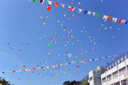 みんなの「希望をのせて」、雲一つない青空に舞い上がったカラフルな風船。きっとみんなの思い出に残ることでしょう。準備にご協力いただいた皆様ありがとうございました。