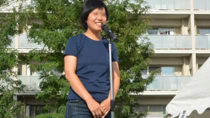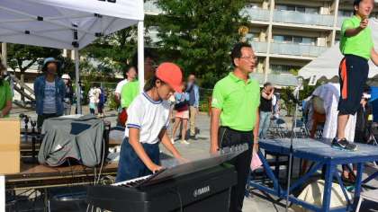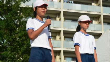閉会式は校長講話、PTA会長の言葉、児童代表の言葉と続きます。PTA会長さんからは、子どもたちのがんばった姿に対してお褒めの言葉と教職員への感謝の言葉をいただき光栄委に思いました。6年生児童代表2名は、運動会の感想を、静かな口調で率直に語り、それ故に心に響きました。閉会式の最後は、みんなで校歌を歌って終了です。伴奏は6年児童が務めました。