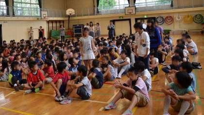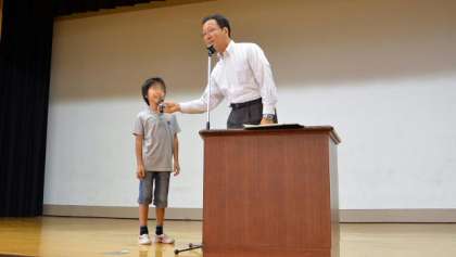 7日、連休のため月曜日の休みが続いていたため、久しぶりの朝会を体育館で行いました。今朝は活躍した子どもたちを紹介しました。最初は近隣市の空手大会で準優勝の2年生男子。次に9月に行われた水泳記録会100自由形で区全体の7位になった児童を舞台上で表彰しました。ちょっと恥ずかしそうでしたが、みんなから大きな拍手をもらって満足そうです。そして、夏休み中に行われた漢字検定にチャレンジして合格した児童を、級別に紹介しました。合格者がたくさんいたので、とてもうれしく思いました。おめでとう、よくがんばりましたね。
