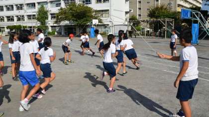 連合運動会の団体種目、5分間長なわとびの練習にも熱がはいっています。目指すは、昨年度の6年生が更新した希望が小学校の記録です。
