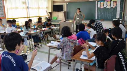 5年、6年1組・2組の授業のようすです。さすが高学年では、一人ひとりによく考えさせることを心がけていました。6年生では、登場人物のだれの行動に共感するか、カードで表明させる工夫もしていました。