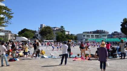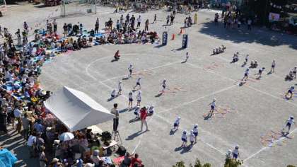 13日(日)、校庭で近隣の幼稚園の運動会が行われ、多くの子どもたちと家族の方が訪れました。天気は快晴、大空の下で、かわいい園児たちが競技、演技を繰り広げました。