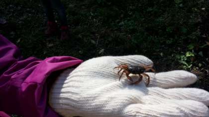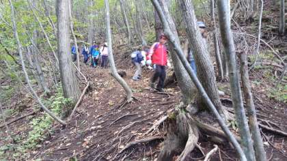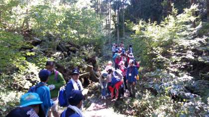 下山ルートも、けっこう坂が急ですが、みんな助け合って、慎重に下りました。途中、サワガニを見つけたりして、楽しんで歩けました。みんな元気です。