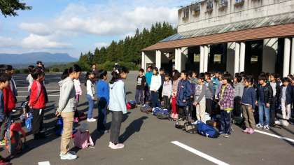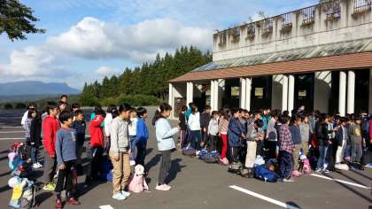 いよいよ「なかのビレジ」とお別れです。閉室式を行い、宿舎の方にあいさつをうかがったり、代表児童のことばなどを行いました。式終了後、記念撮影をしました。