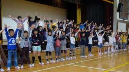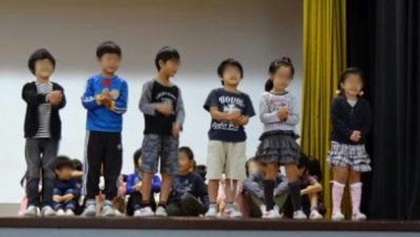 「虹」は、みんなが大きな声で歌い、最後はかわいい振りをつけて、のびのびと歌うことができました。元気で素直な1年生らしい発表でした。