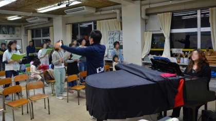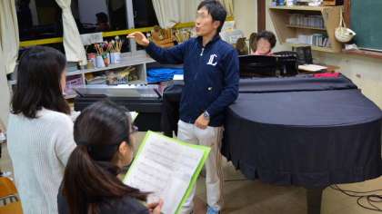 29日(火)午後5時、音楽室で11月9日の開校40周年記念祝賀会で披露するコーラスの練習を、PTA有志の皆さんと、教員が一緒に行いました。今日が最後の練習です。遠くに転居された前PTA会長さんも伴奏をお手伝いしてくださることになって、今日は遠くから駆けつけて来てくださいました。1時間ほど、熱心に練習しました。9日の祝賀会で披露します。