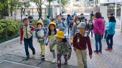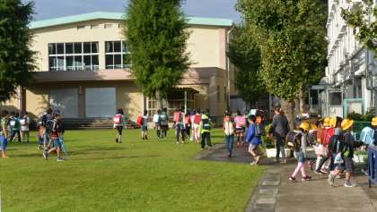 30日朝、昨日は雨がしとしと降り続き肌寒かったのですが、今朝は晴天で朝日がまぶしく輝いていました。そんな天気に影響されたのか、子どもたちも元気です。あいさつ当番は5年生。みんな大きな声で「おはようございます」のあいさつをしていました。