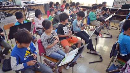 31日(木)、3年生音楽授業のようすです。40周年記念式典の全員合唱「希望のつばさ」の練習の後、リコーダーの練習をしました。楽譜を見て最初にメロディーを口ずさんで覚え、その後で練習をしました。3年生、さすがにメロディーを覚えるのも早いですね。