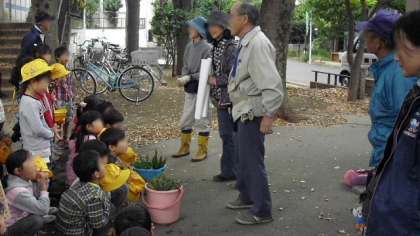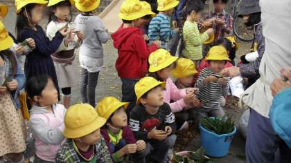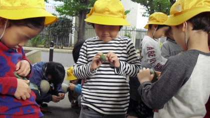 11日、1年1組が「小径の会」の皆さんから、笹舟の作り方を教わりました。「小径」についてはたびたびこのページで紹介していますが、そこを守り維持管理しているのが「小径の会」の皆さんです。小径の近くの池田公園に出かけ、用意していただいた笹で、さっそく笹舟作りに挑戦です。
