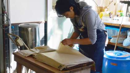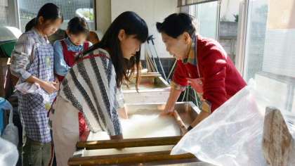 今日は6年1組が紙すき2